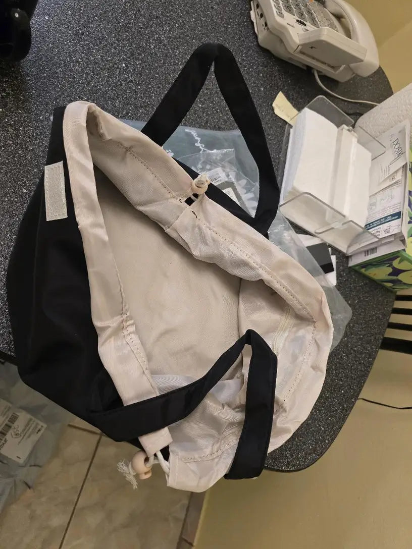 Our barrel design opens flat with a drawstring, so you see everything at once—no more digging. It’s also water resistant, compact and easy to pack, making it perfect for travel.